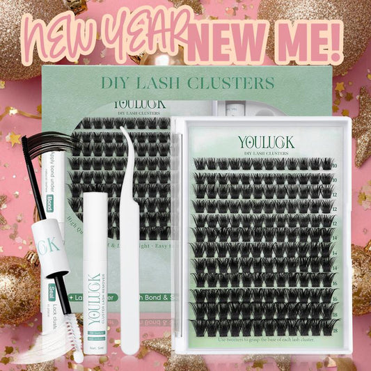 YOULUCK DIY Lash Clusters Kit - Soft Fluffy Long-Lasting Lashes with Glue Remover & Tweezer for Beginners Easy At-Home Application - Eyelash Set