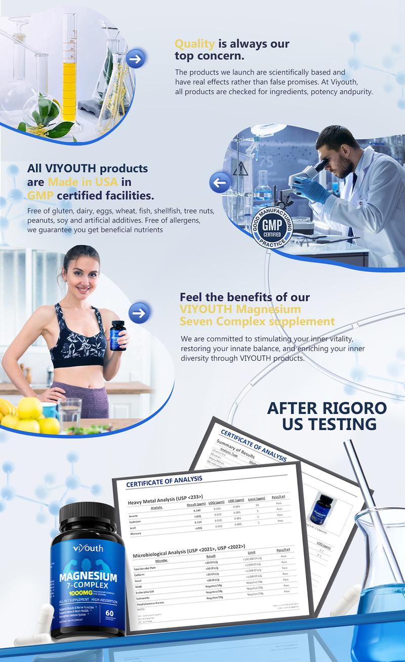 🌟 Viyouth 1000mg High Absorption 10-in-1 Magnesium Mix